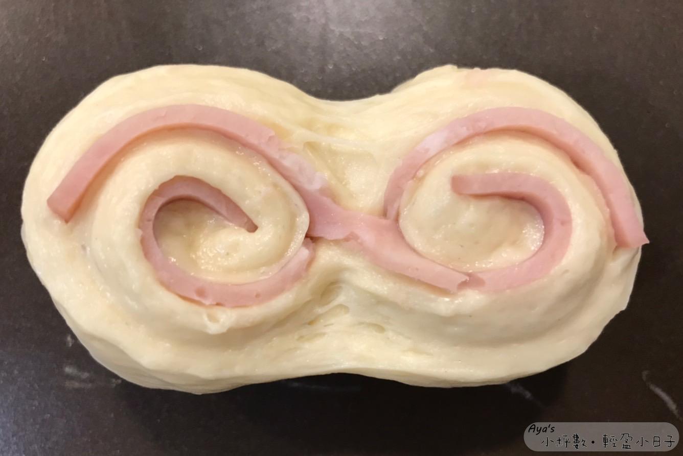有些把火腿片包入麵糰後切開,讓麵糰四處都有火腿片…變化性很豐富,