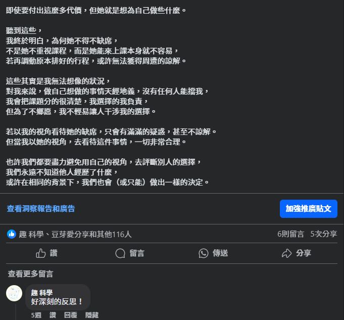 但嘗試了一個月FB發文,我也發現: