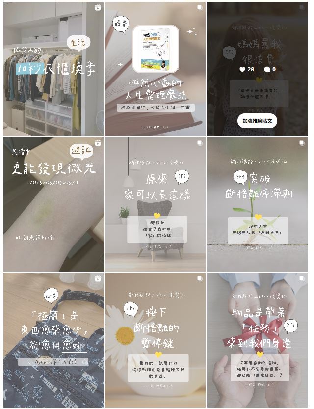 無論是開始嘗試不同的創作方式(短影音),或是發文的頻率、圖片編輯形式,