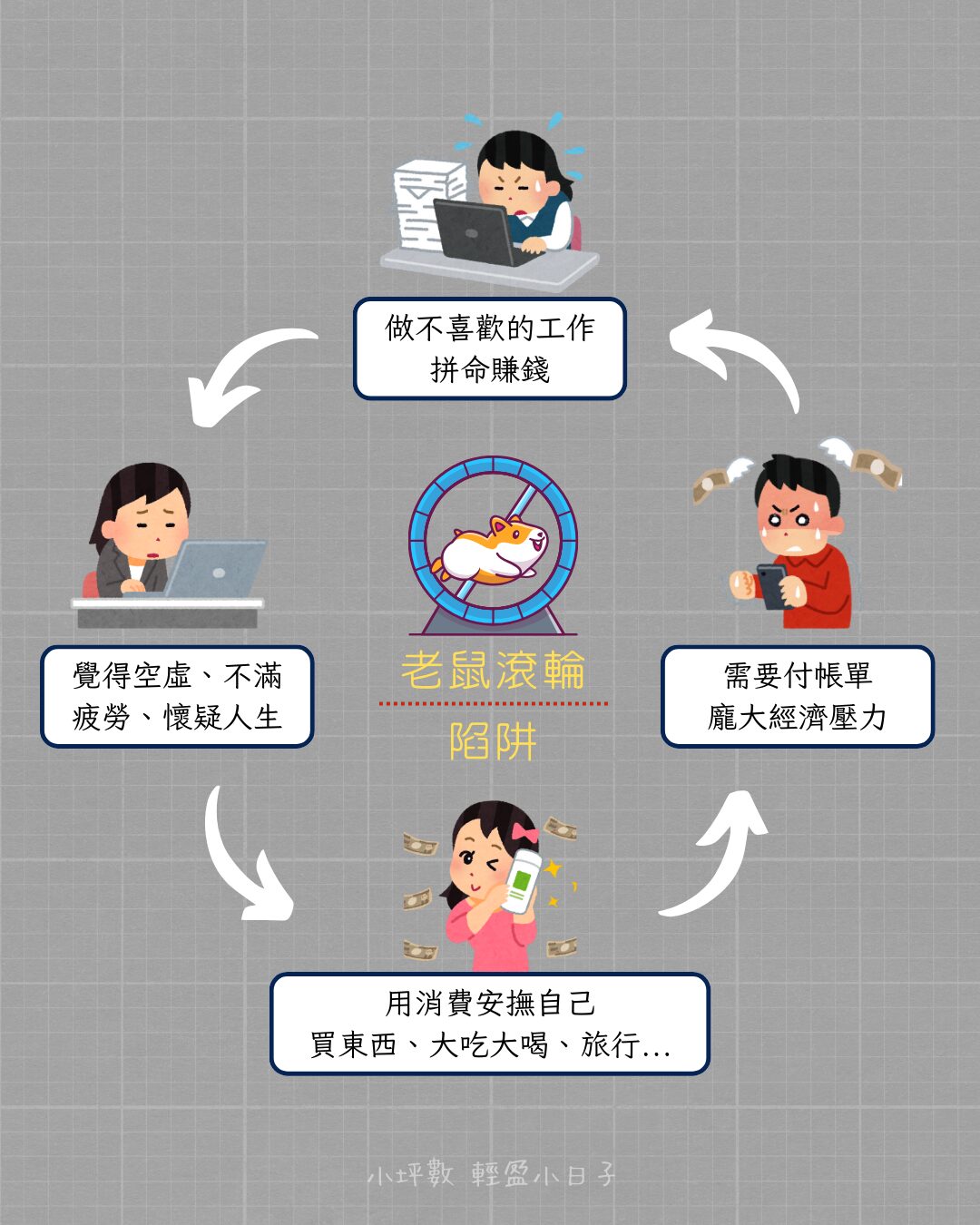 很像滾輪中拼命奔跑的老鼠,且一生跳不出這個循環