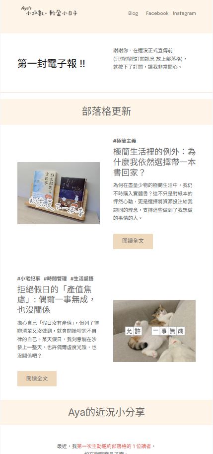同一天,我也開始在FB和IG放上了電子報訂閱的消息,