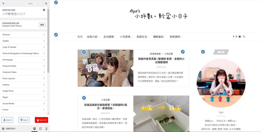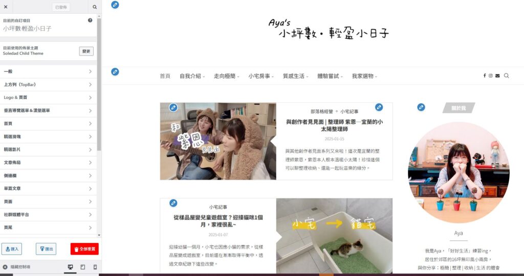 而讓佈景主題中文化後,「自訂選項」突然變成天堂(笑)