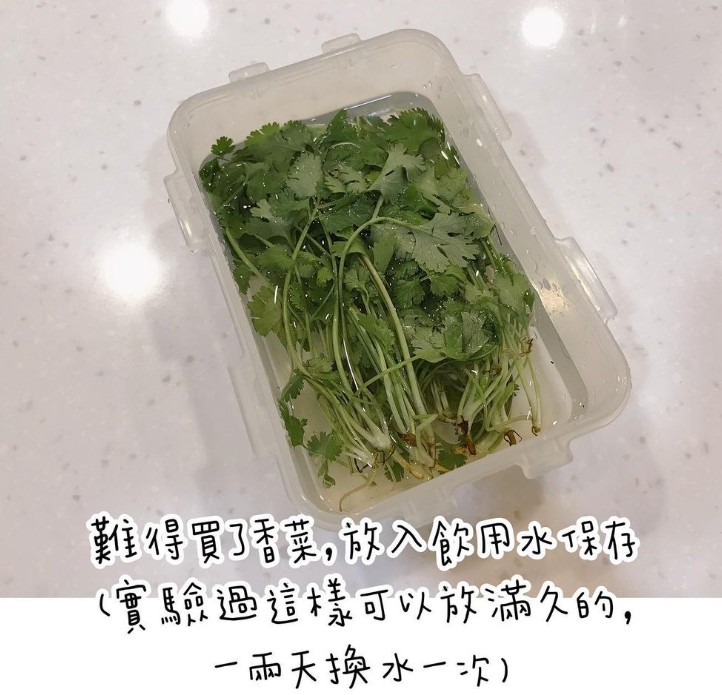記得還有香菜如何保存的實驗影片,後來我也用浸泡在水裡的方式保存香菜,