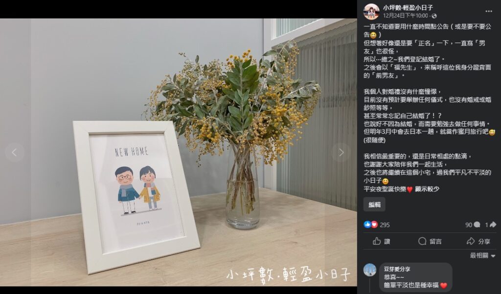 最後就是在平安夜,我發佈了一則「結婚公告」。