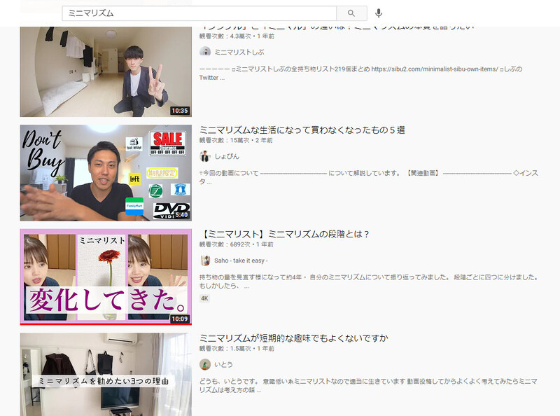 用關鍵字 ミニマリズム 搜尋YouTube