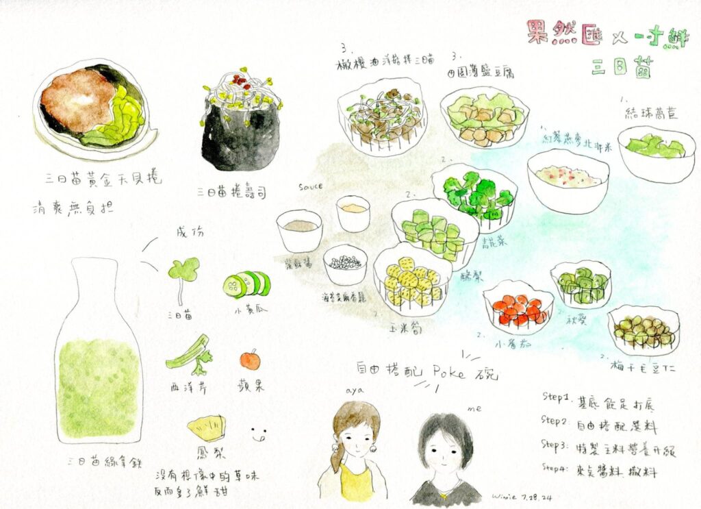 也知道很多人會把三日苗加入其他蔬菜水果,打成「綠拿鐵」,