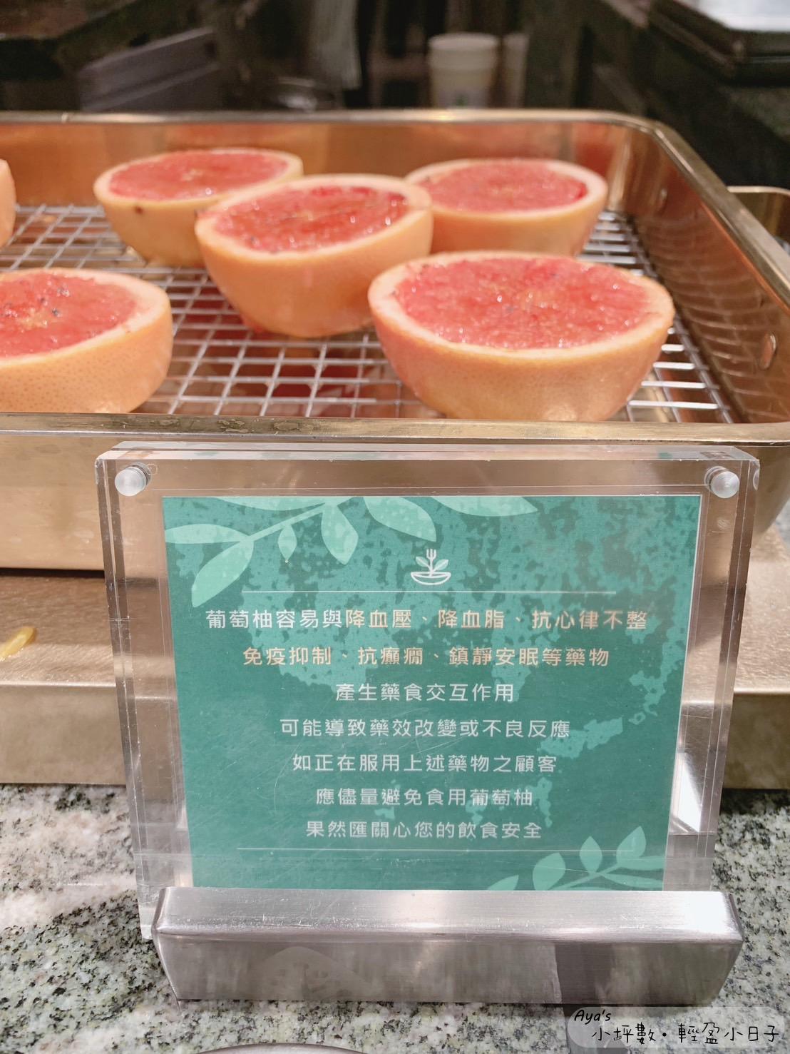 但我居然在「焦糖燒葡萄柚」前,看到關於食用特定藥物不適合吃葡萄柚的提醒,