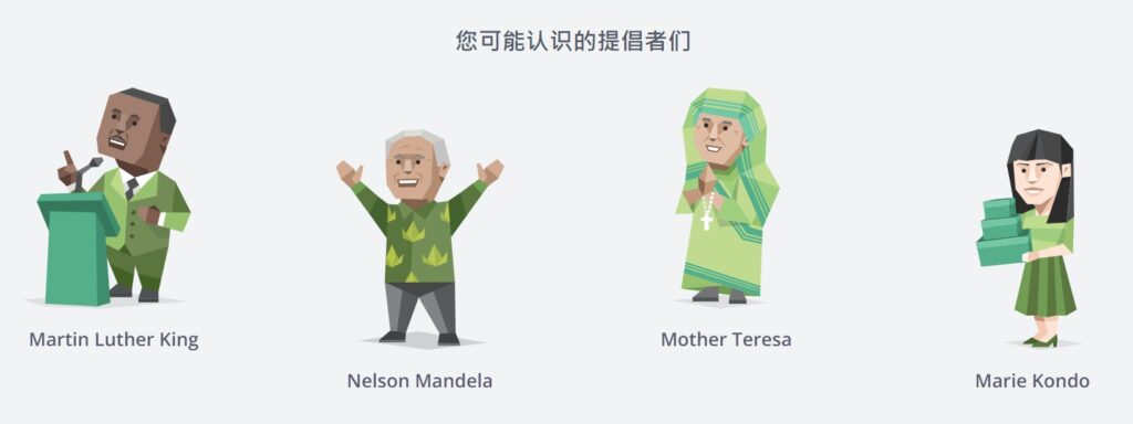 網站會提供相對應的名人,除了甘地、德雷莎修女之外,