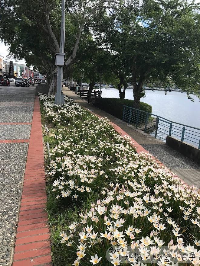 在龍潭大池的人行道邊,邂逅了不知名的花朵,