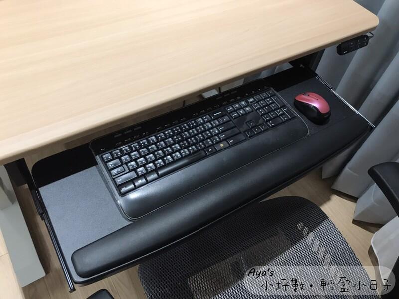 另外我也加購了人體工學鍵盤架 ,想說這樣打字手腕可以靠著,結果這個鍵盤架意外地很寬,放了無線鍵盤+滑鼠後居然還有一些空間呢!