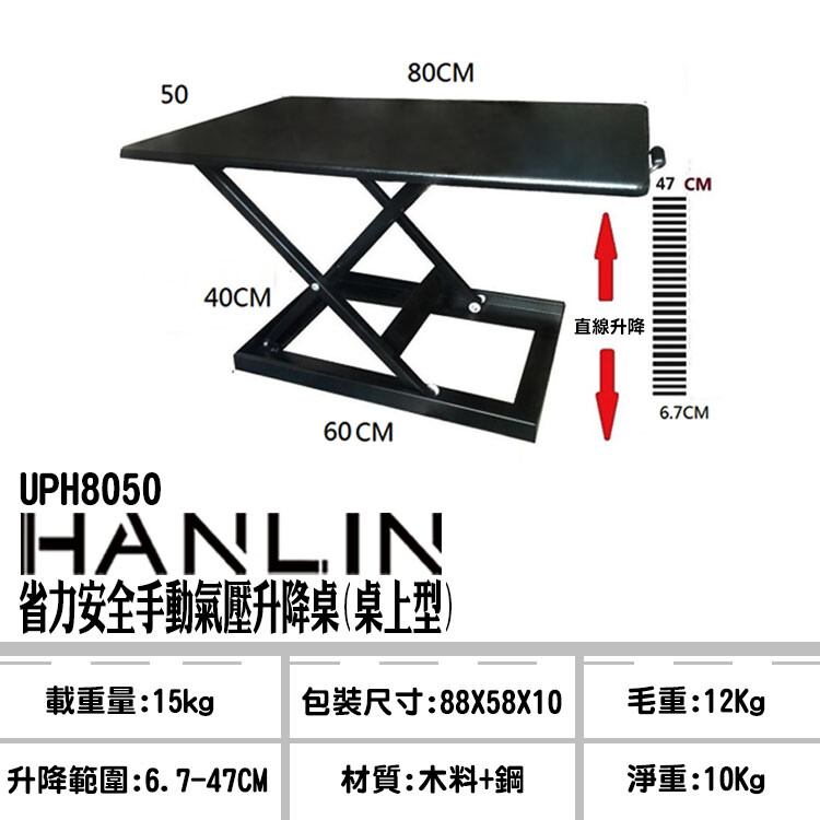 商品是 手動氣壓升降桌(桌上型),雖然是手動而且桌面只有不大的一塊,但也能達到「站著用電腦」的目的,就一併給大家參考 : )