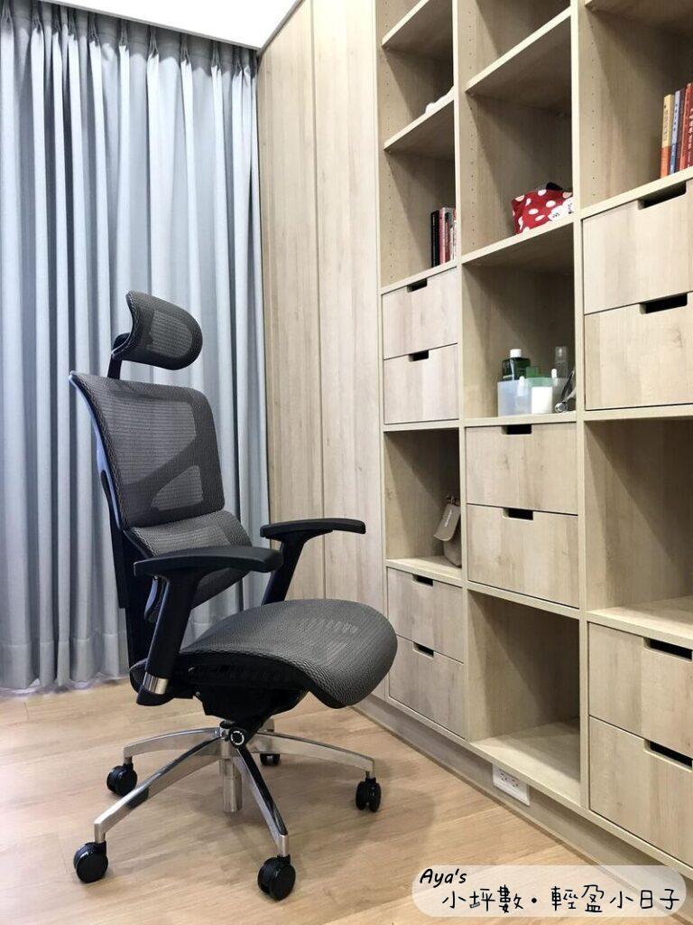 一般來說晚上洗完澡後,我可以把辦公椅拖往櫃子前,坐著的高度差不多就是放保養品那格的高度,坐著看鏡子塗抹保養品。