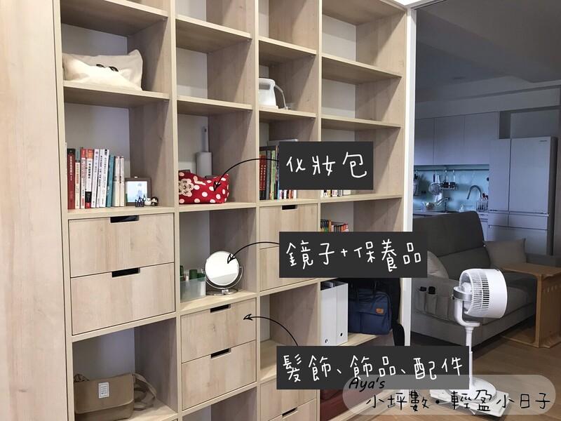 不是一定要臥室才能化妝,化妝保養品也不一定要放在臥室。就這樣我們調整了許多置物的地點,搞定了小坪數家中的收納。