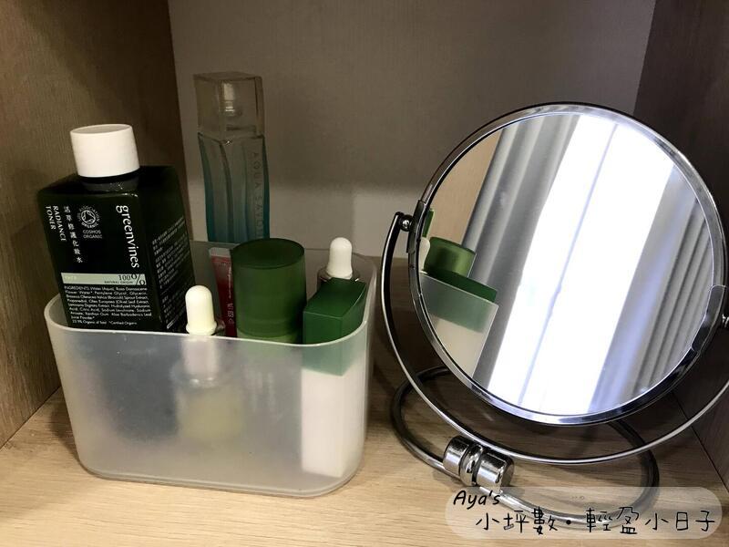 但更多時候是因為保養步驟不多,我就會乾脆把鏡子拿到化妝包那格,洗好澡後直接”站著”使用保養品。