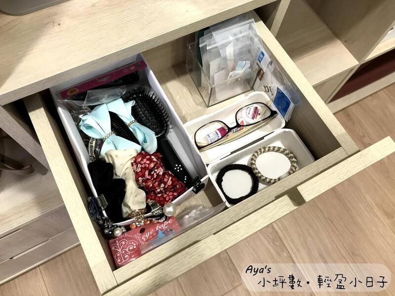 耳環和項鍊其實原本就不多,目前是用無印的可堆疊壓克力盒+有點厚度的透明袋子,分一個個物件收納。