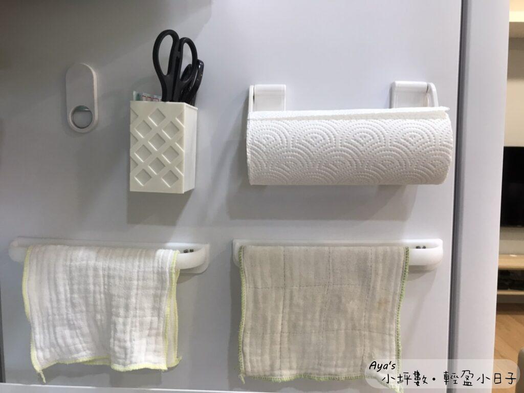 一條是擦洗好的碗盤,比較乾淨。另一條就是廚房的環境用(上述擦檯面、餐桌…等都是這條),一天下來還是會蠻多髒污的。