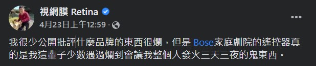 但男友看來看去就是偏愛BOSE,連看到在抱怨BOSE遙控器的討論串,都沒有動搖XD
