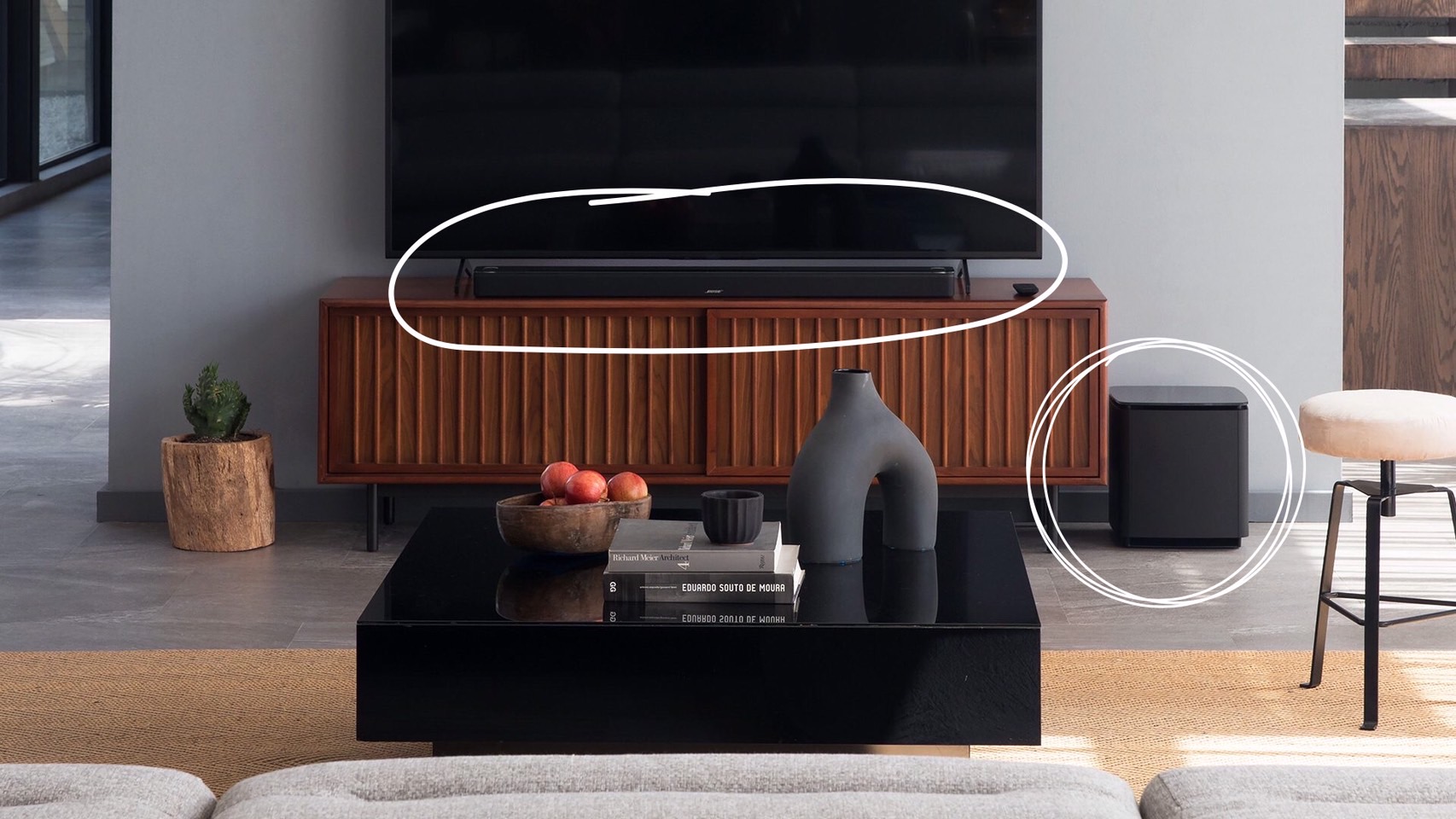 BOSE的店員建議我們不要把重低音放在檯面上,