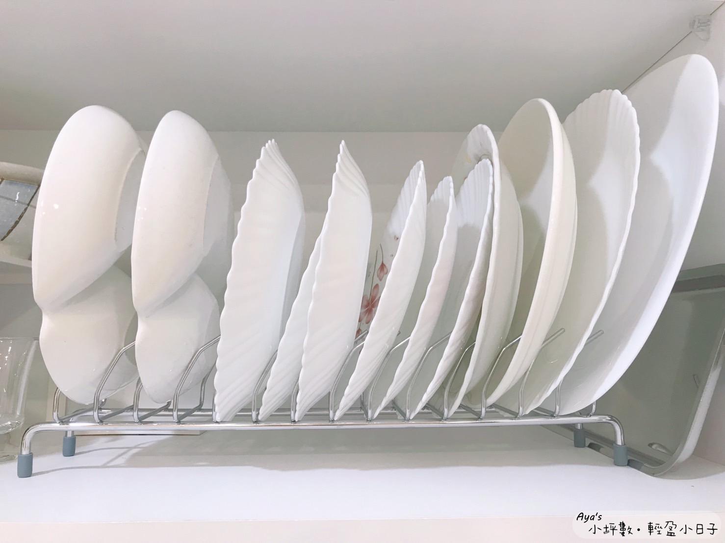 所以最後還是選了雖然比較佔空間、但盤子可以單個分別放好的架子,