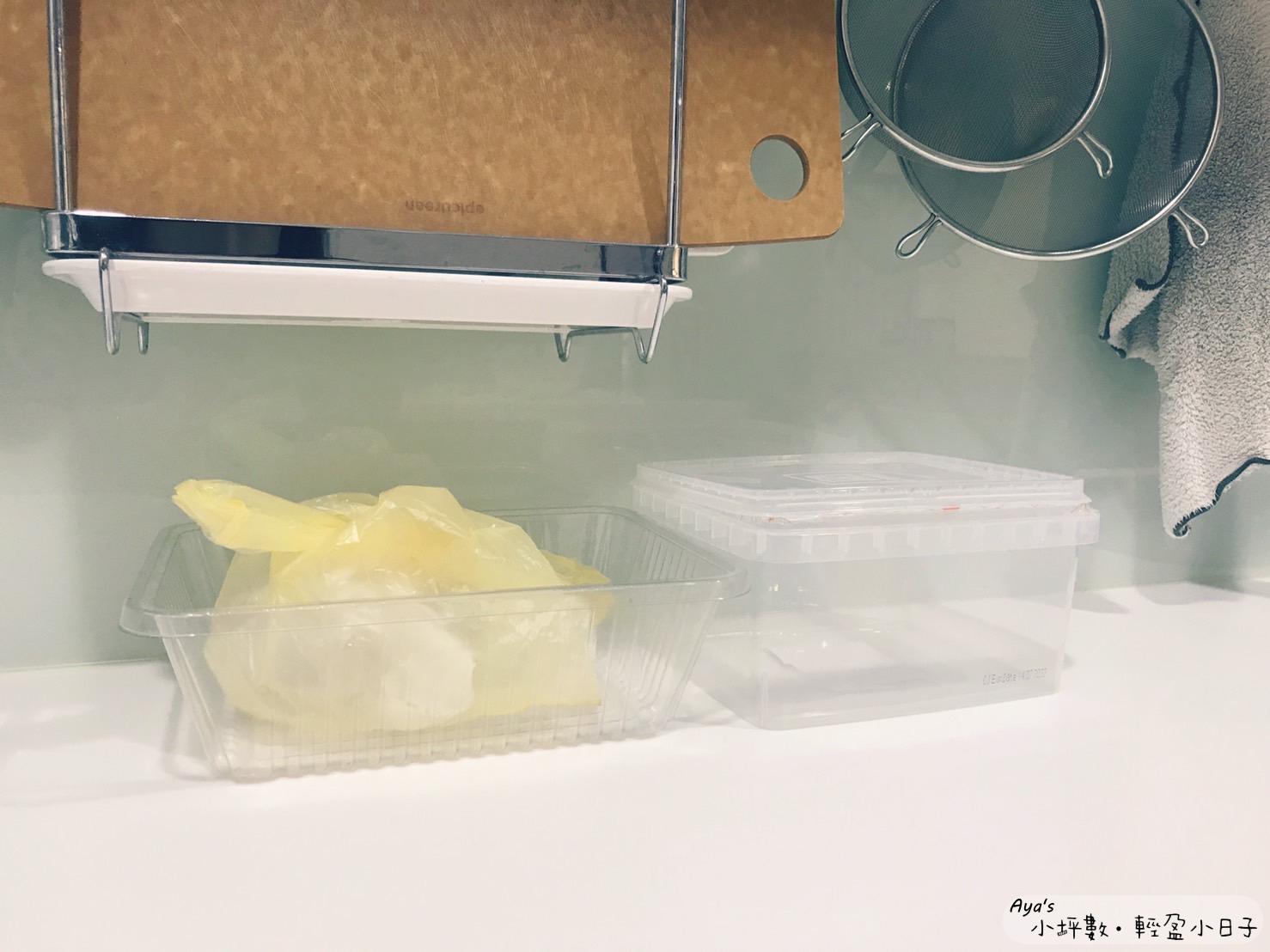 所以廚房的垃圾,我們目前很隨興用現有的塑膠盒來裝,