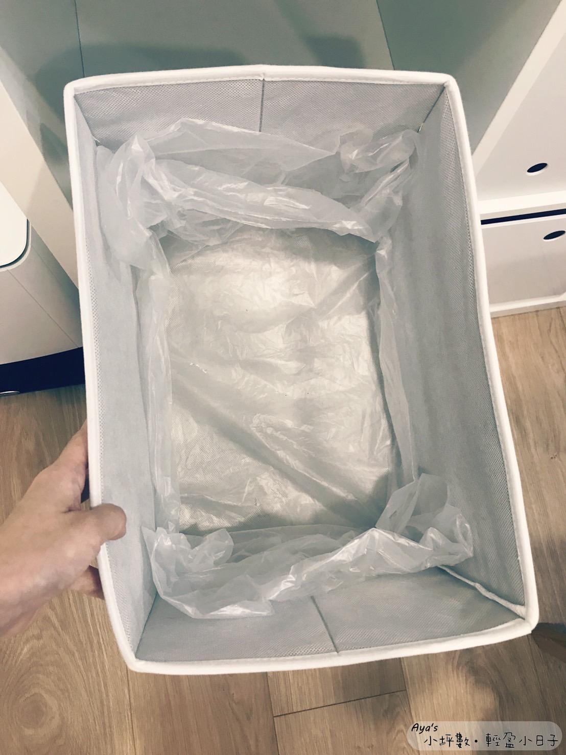 雖然回收物大多也都不髒,但還是稍微隔絕回收物和不織布籃本身。
