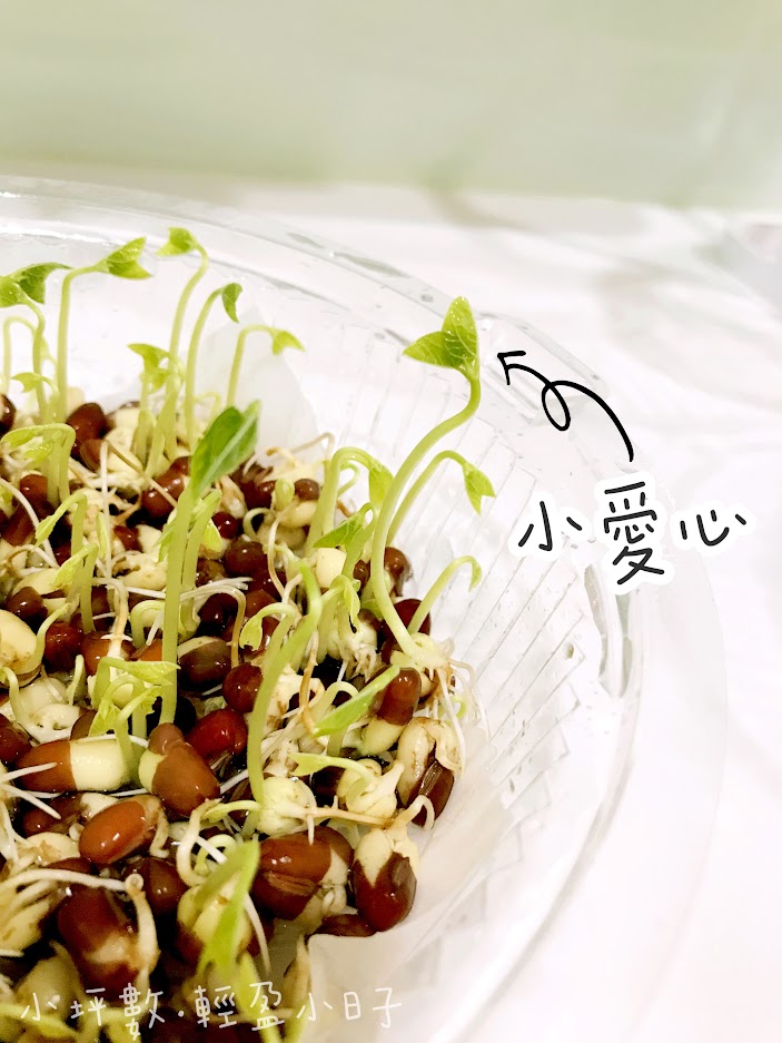 自家開心農場─水耕種紅豆芽苗!成功長出愛心型葉片!
