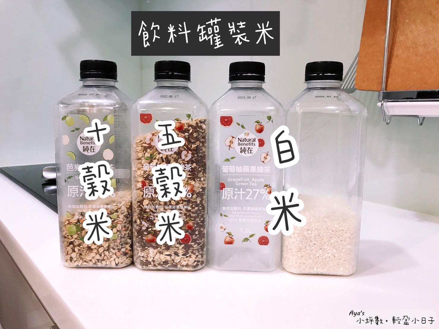 看完一直哇哇哇,這樣裝也太方便了吧! 尤其是那個果汁喝完的空瓶用來裝米,那個果汁芭樂口味的很好喝,題外話