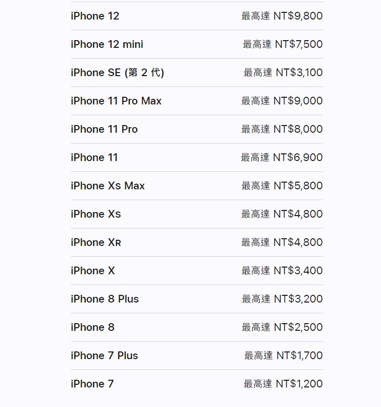 有舊機預估折抵價,目前最低就是我正在使用的iphoe7…