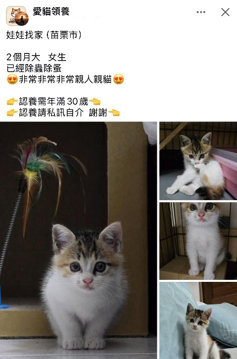 那是福先生在貓咪送養社團,看到的送養訊息,