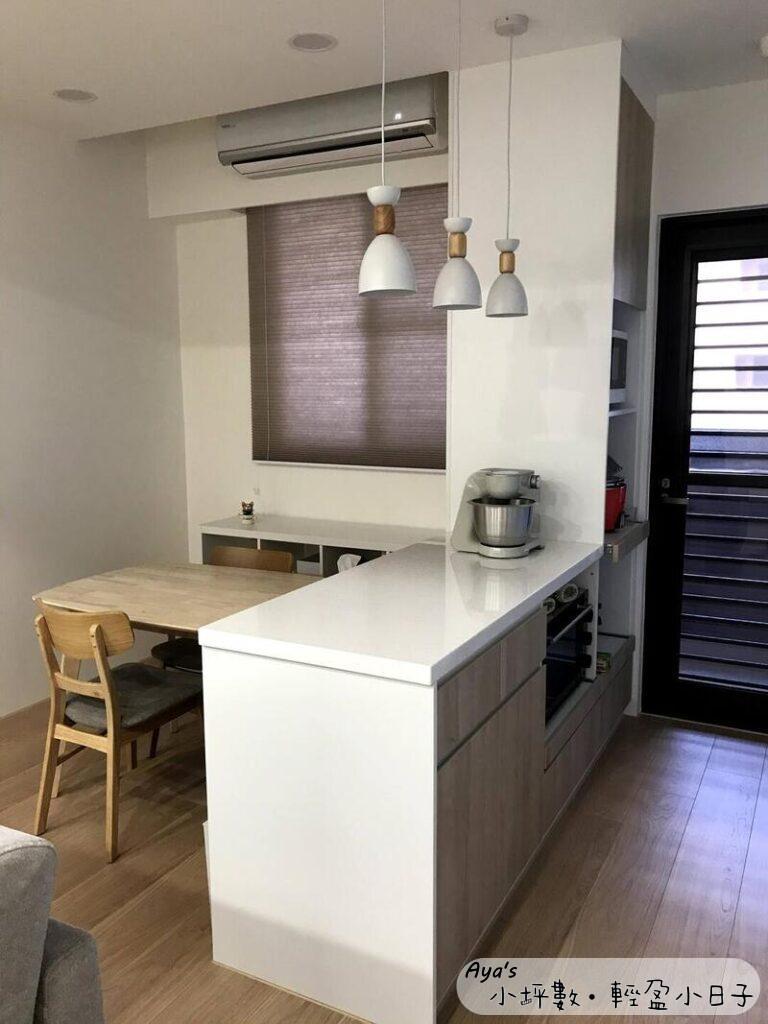 中島則是設計師於裝潢時幫我們做的,雖然算是迷你的中島,但我們很喜歡。做晚餐時還可以當傳膳檯,直接把煮好的菜放在上面,餐桌那方的人直接接過來XD