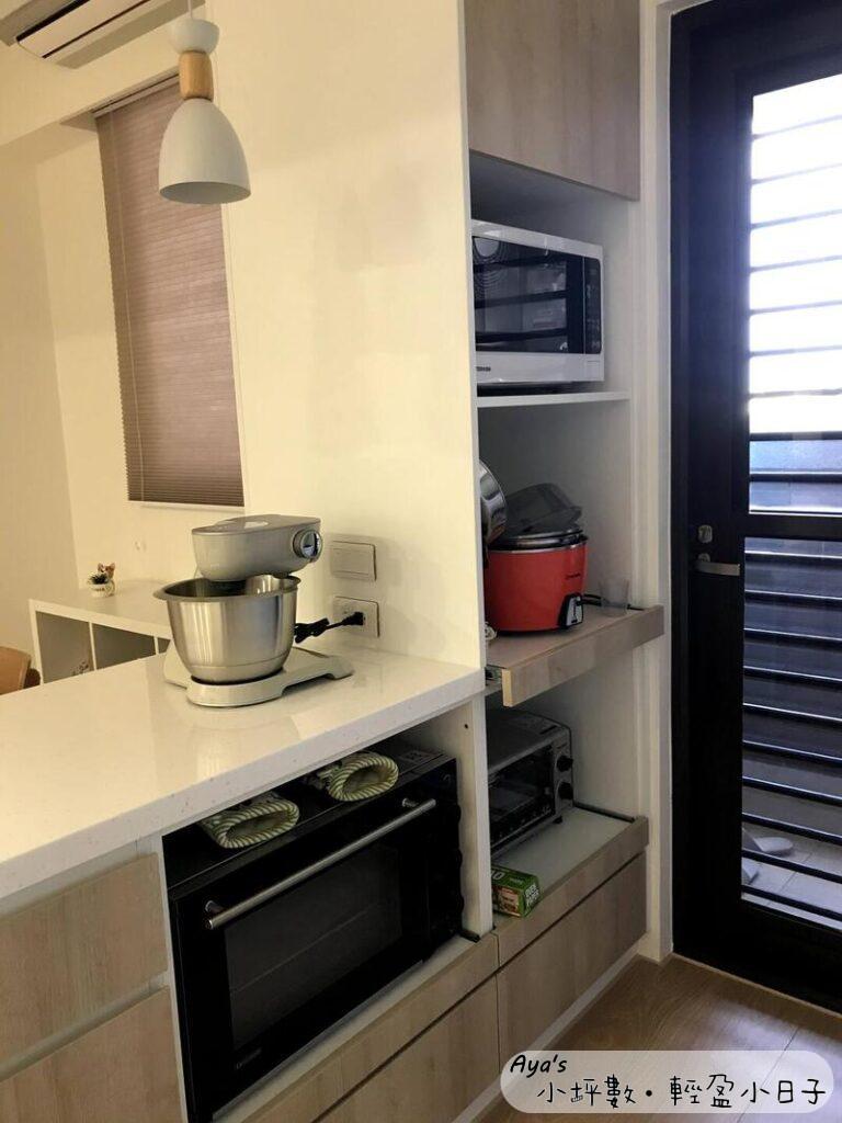 對於常常開伙又會做烘焙的我們而言,中島和電器櫃的收納機能也幫我們不少,當初其實設計師都是建議不要有高起來的電器櫃,讓中島可以延伸多一點,看起來比較大器。