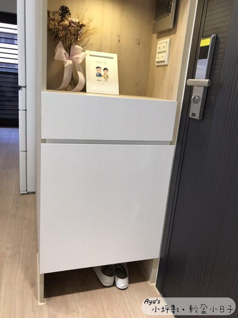 玄關櫃內有大樓本身的對講機,還有一些燈源的開關。鞋櫃非常小,大概只能放約8雙鞋吧…但因為我們鞋子少所以差不多剛好。