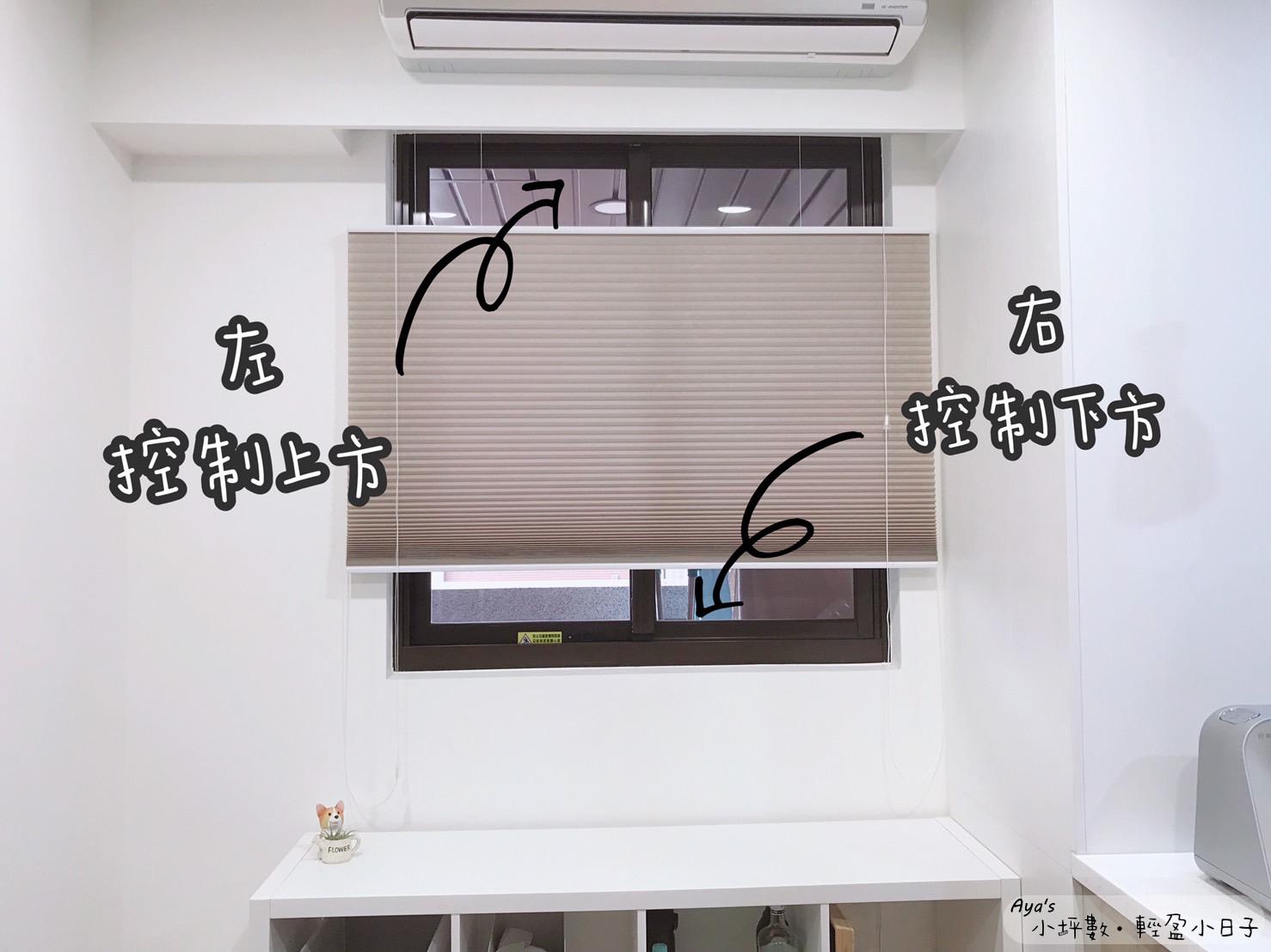 風琴簾兩邊各有一條拉繩,右邊拉繩控制由下往上,左邊拉繩控制由上往下。