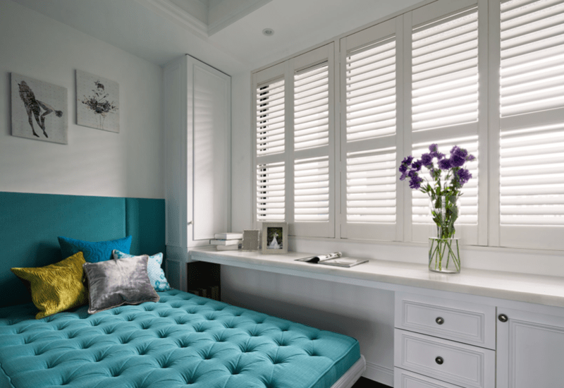 和客廳不同的是,主臥的風琴簾是不透光的,