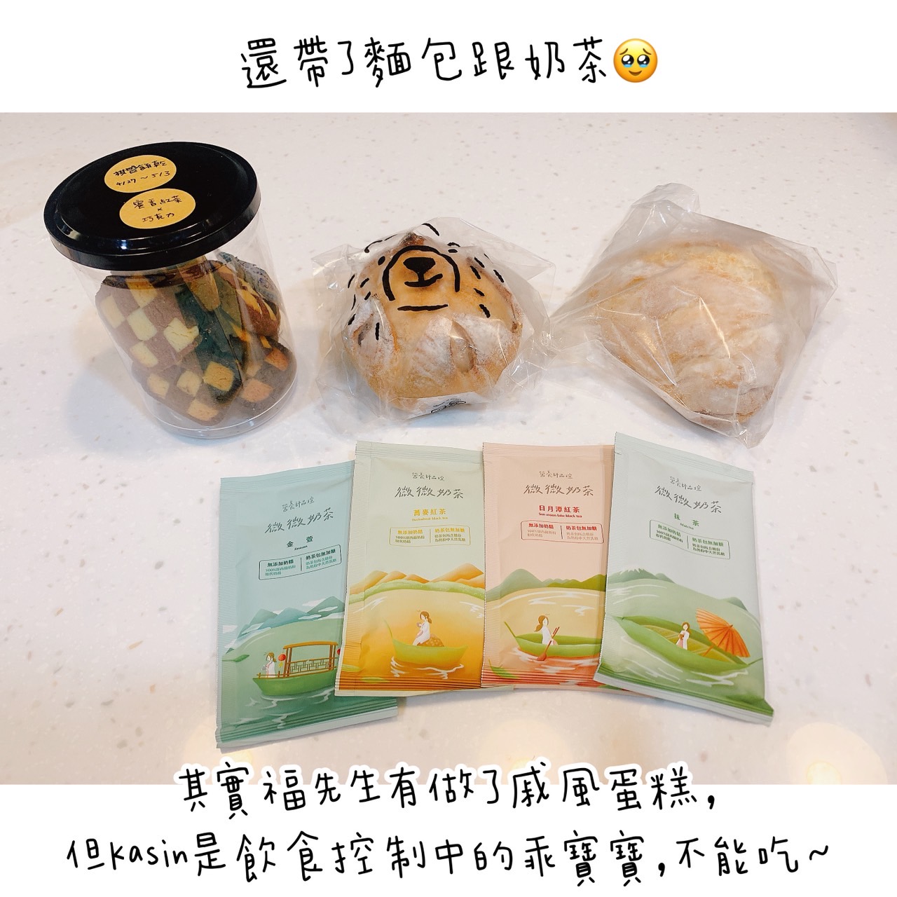 反而是還帶了超~多~她自己做的伴手禮來(麵包、蛋糕、餅乾…),