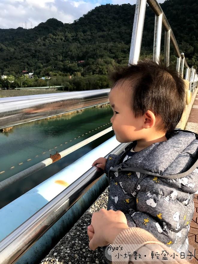 當時和外甥一起去石門水庫,2歲多的外甥華華很喜歡看水流,我牽著他的小手,跟他一起慢慢走在橋上。