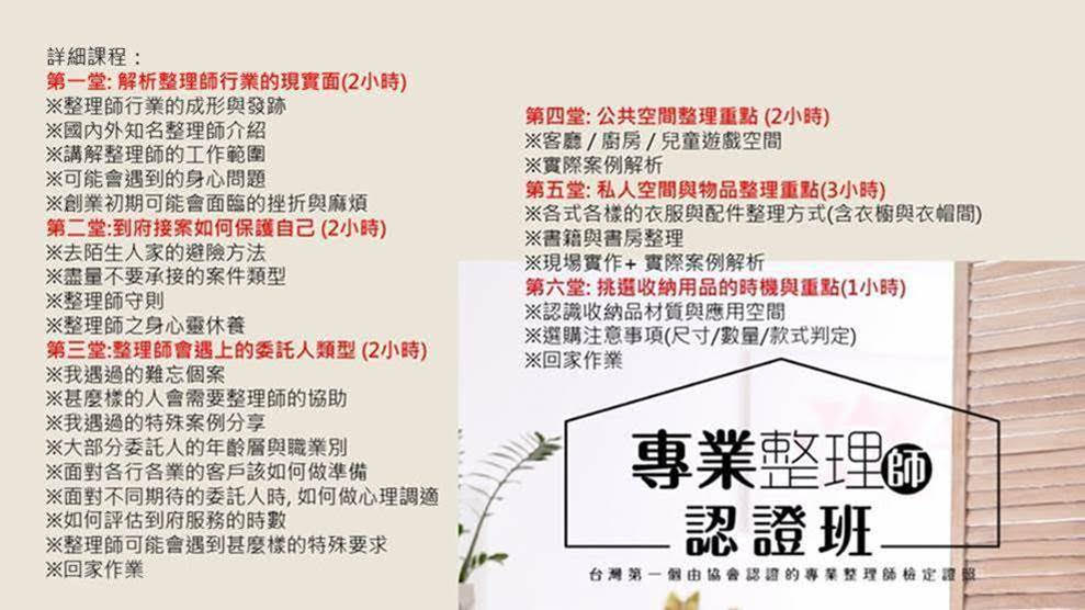 其實目前坊間也有許多整理師課程,