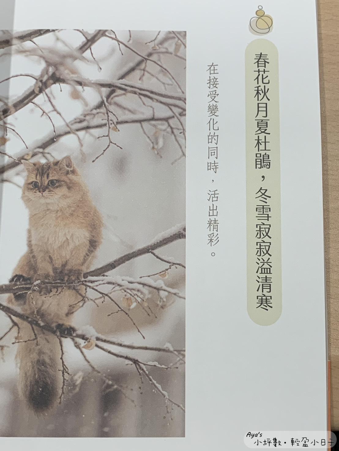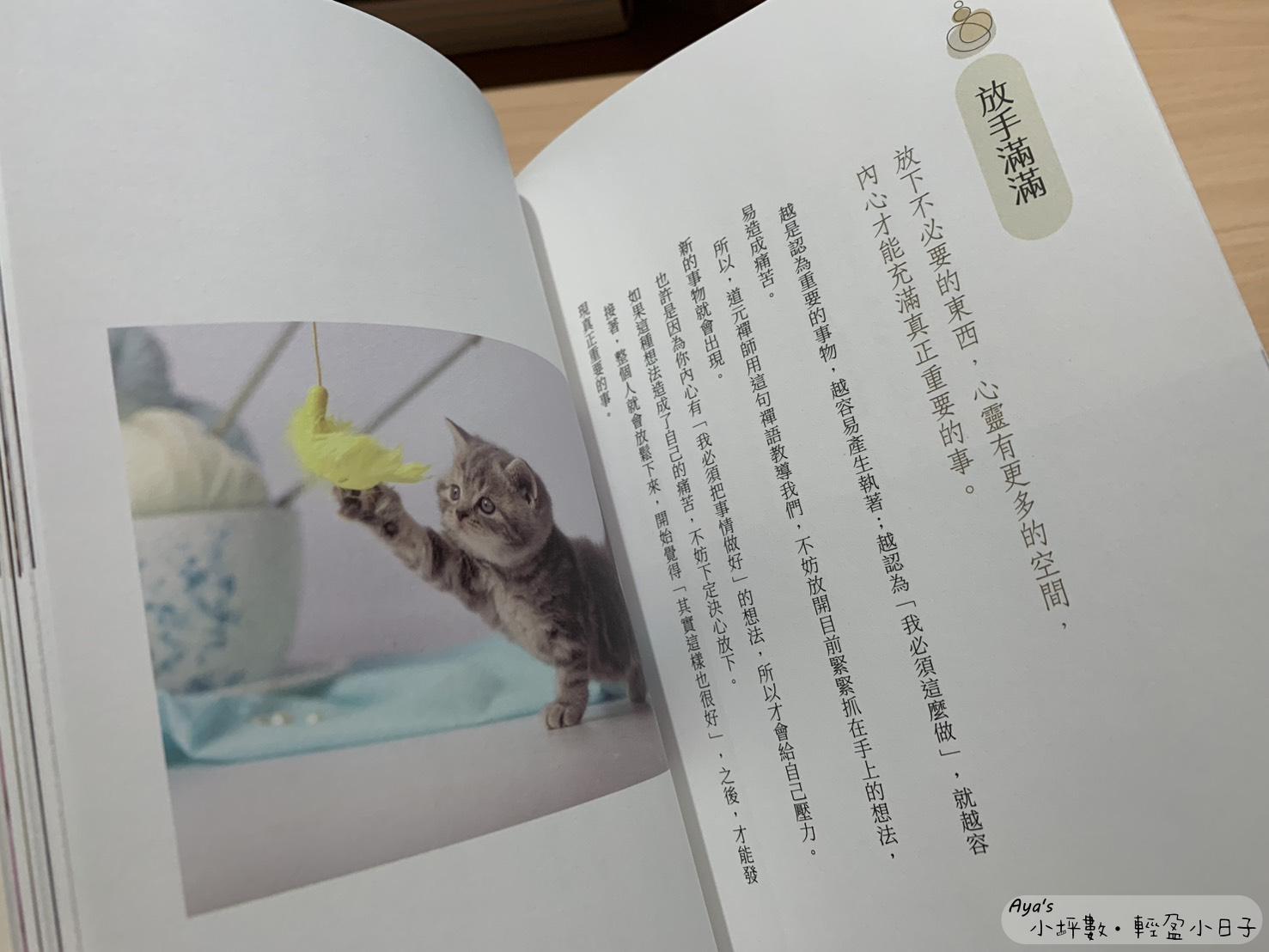 翻開後,發現每個頁面是一段短文,加上貓咪的療癒照片,