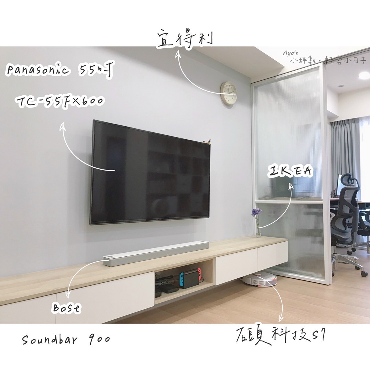 • 時鐘:宜得利掛置兩用鐘 (用3M無痕掛勾黏在牆上)