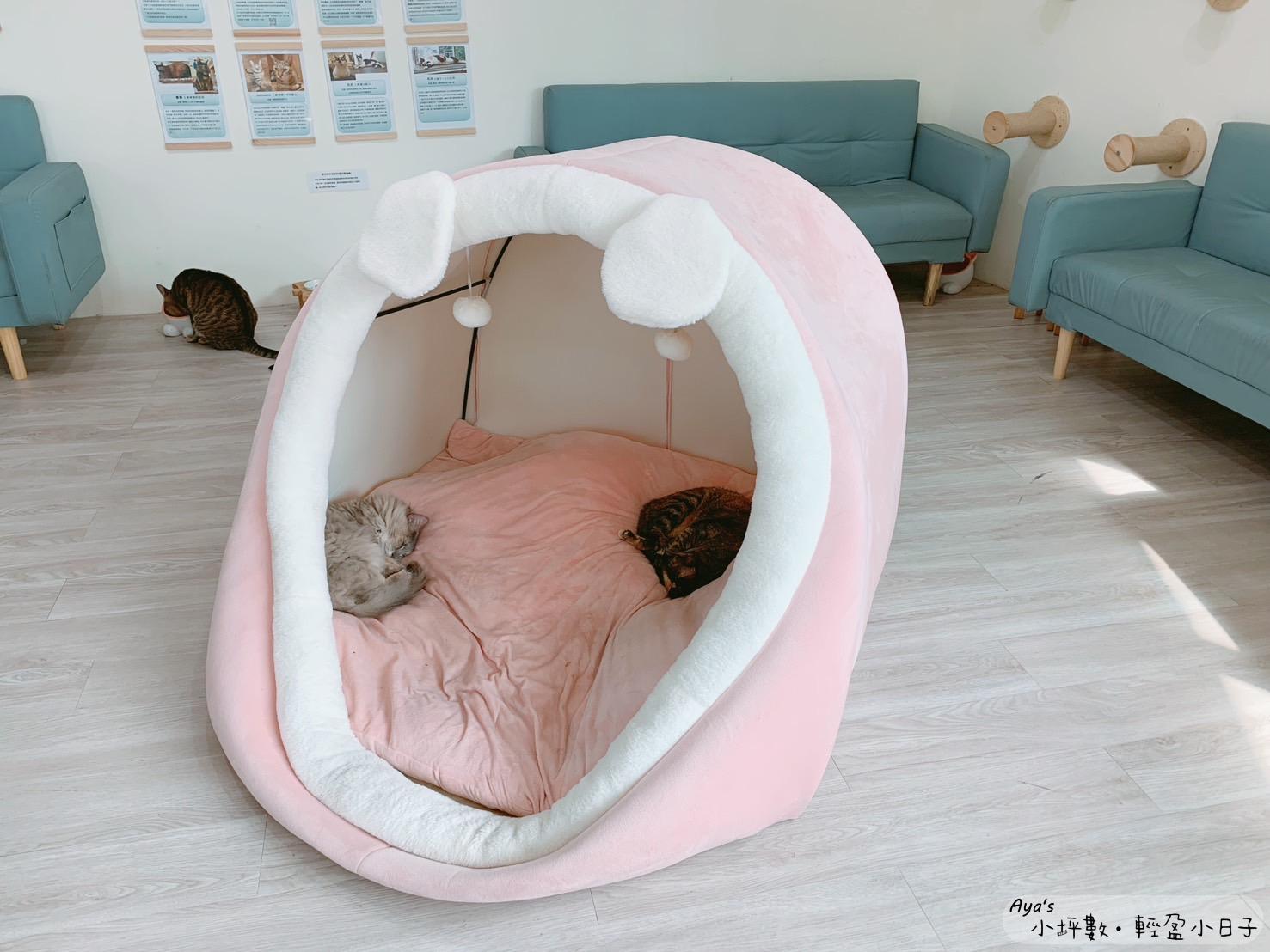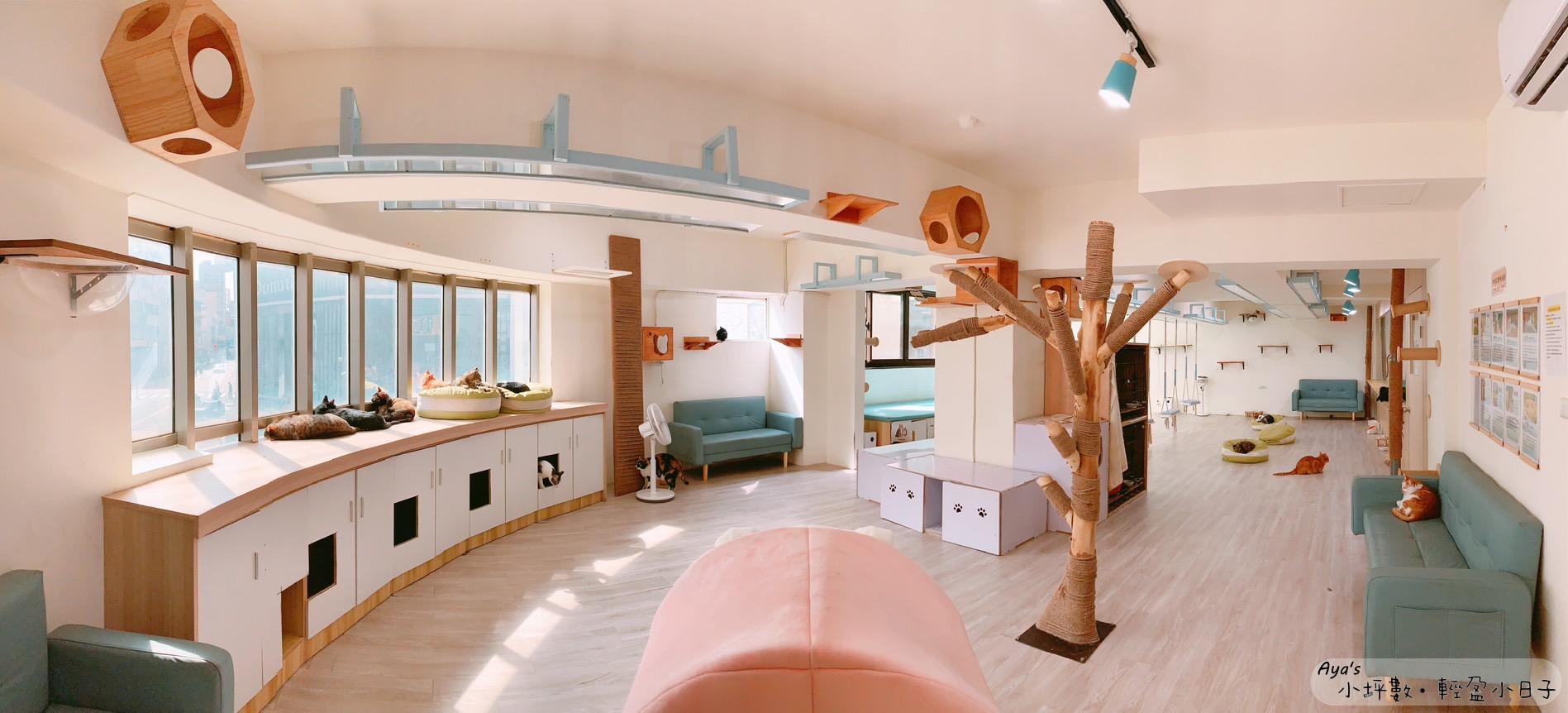 這裡令人驚豔的是貓房真的很~大~,有設計許多給貓咪躺的地方,