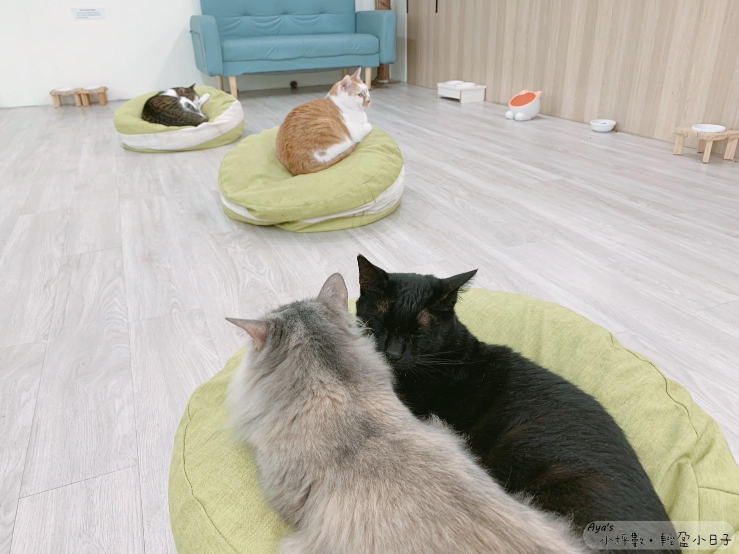 貓房空間大,大家都穿拖鞋進入,可以隨地坐臥,