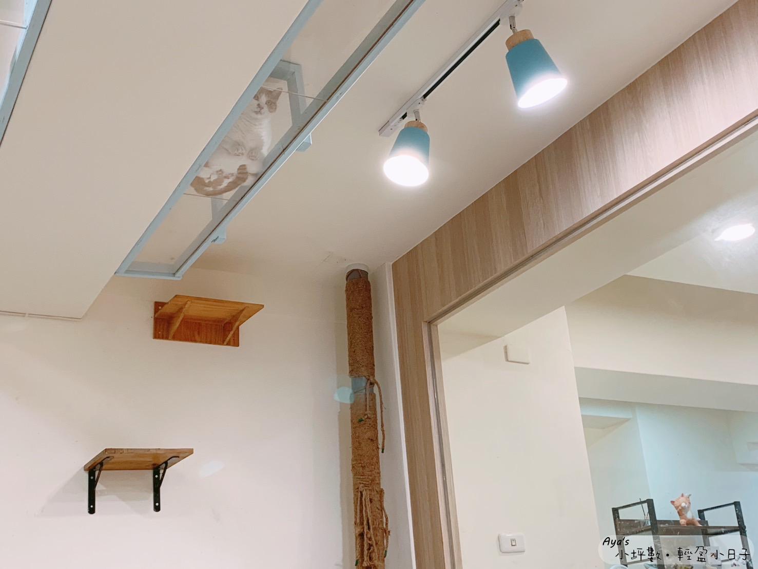 靠近天花板的高處,設了不少貓咪可以走動的層板,讓暫時想獨處的貓咪可以遠離塵囂(?),