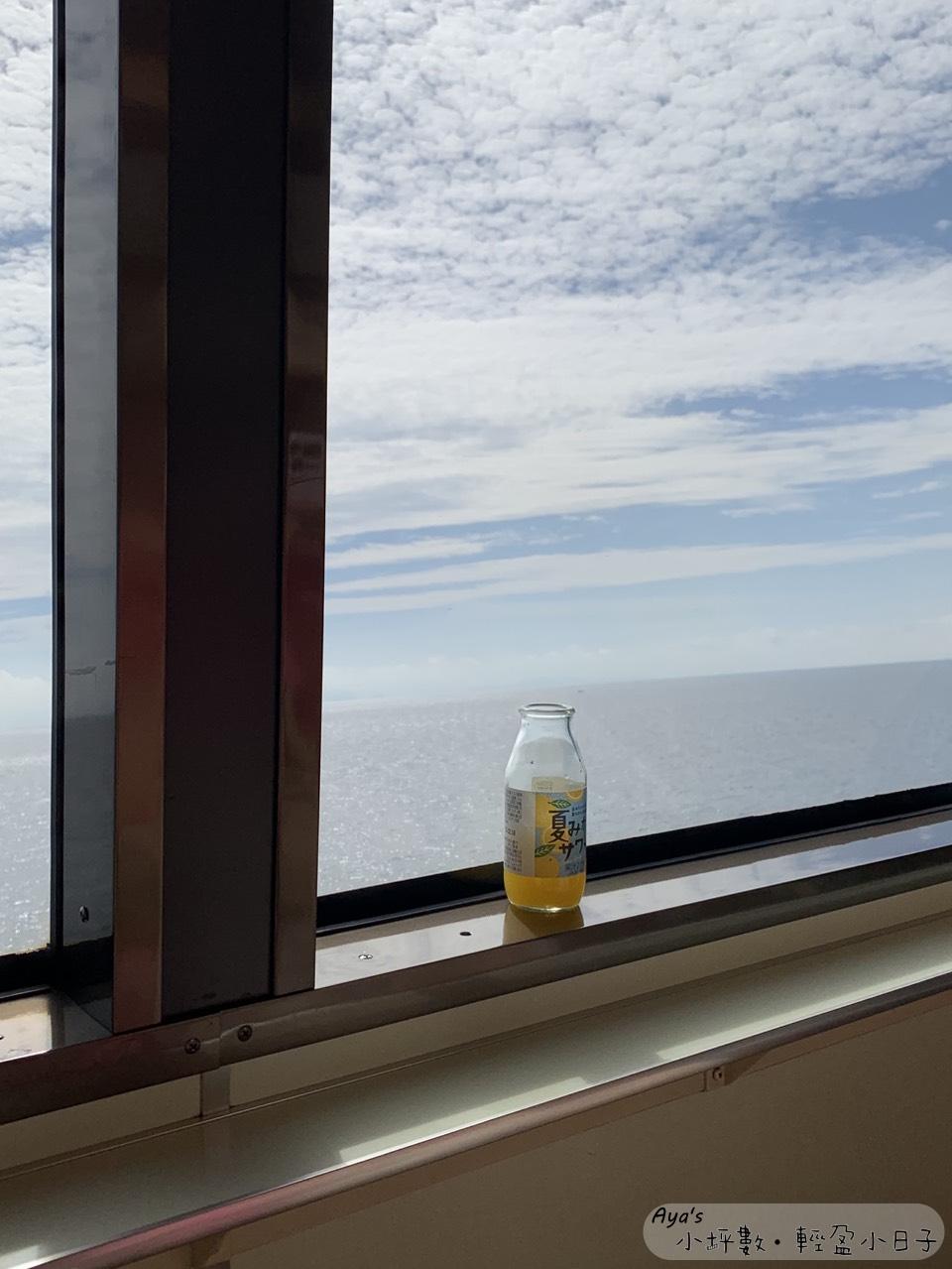 大面面海的玻璃窗,可以直接看到對面的島嶼(初島),